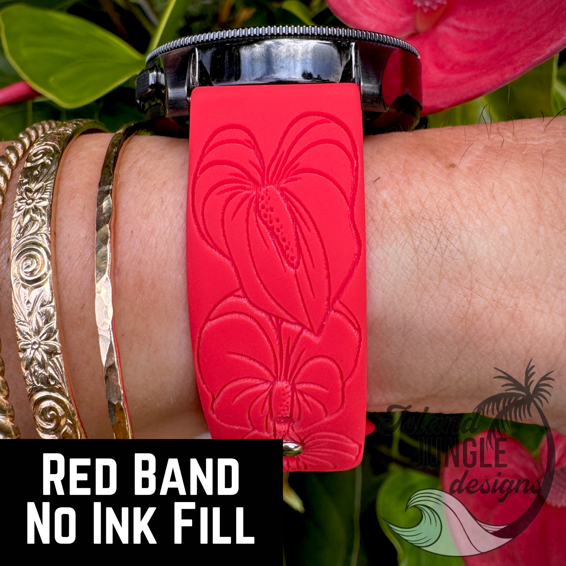 Filled: Your watchband engraving will be filled with permanent silicone ink of your choice. There is a $15 fee for adding ink to your band. This process is done by hand and will add extra processing time to your order to complete. If you have questions about processing time, please contact us! All orders are made to order. All sales final on Watch Bands with Ink fill. They are not eligible for exchange or return.