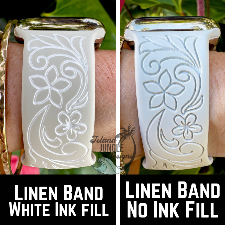 Filled: Your watchband engraving will be filled with permanent silicone ink of your choice. There is a $15 fee for adding ink to your band. This process is done by hand and will add extra processing time to your order to complete. If you have questions about processing time, please contact us! All orders are made to order. All sales final on Watch Bands with Ink fill. They are not eligible for exchange or return.