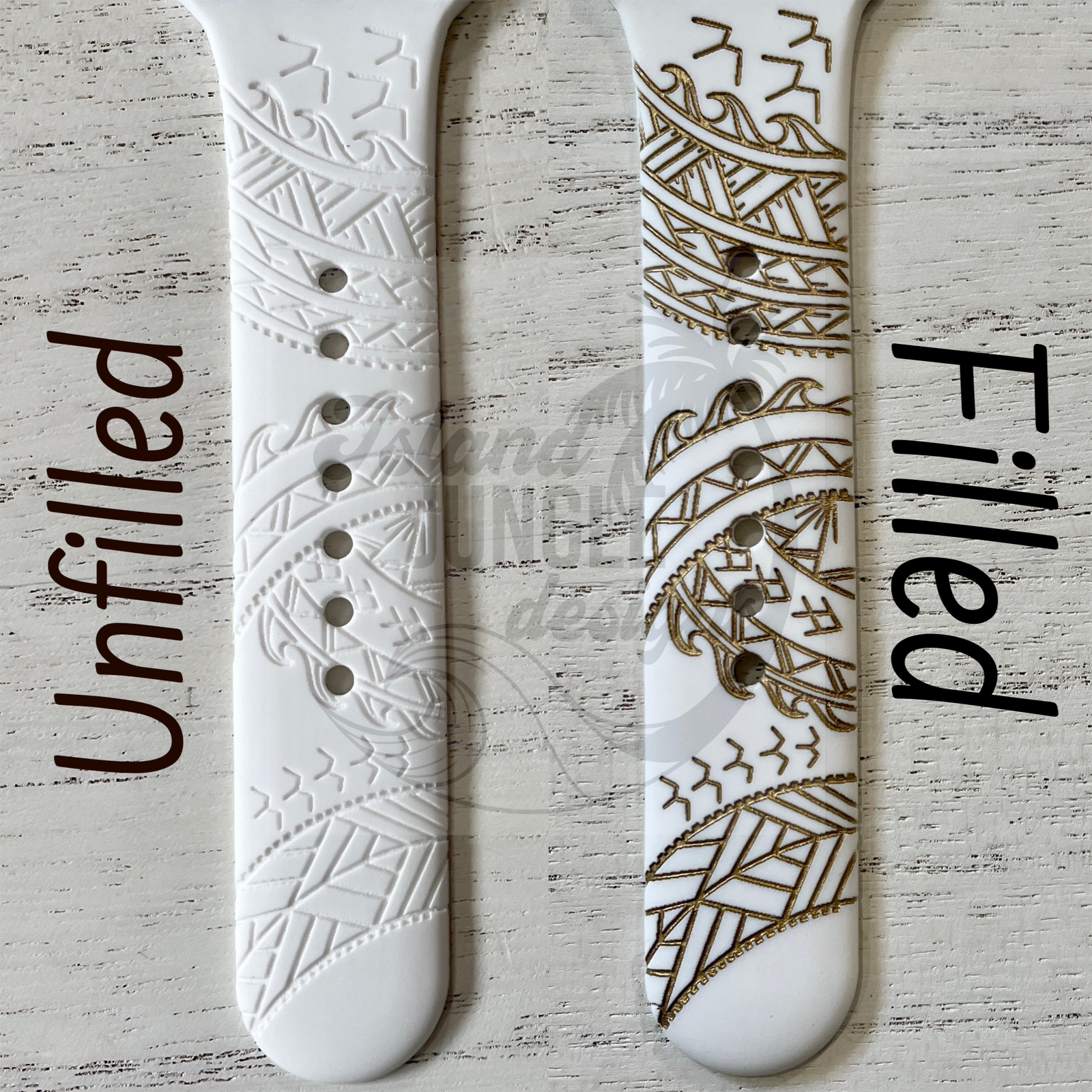 Filled: Your watchband engraving will be filled with permanent silicone ink of your choice. There is a $15 fee for adding ink to your band. This process is done by hand and will add extra processing time to your order to complete. If you have questions about processing time, please contact us! All orders are made to order. All sales final on Watch Bands with Ink fill. They are not eligible for exchange or return.