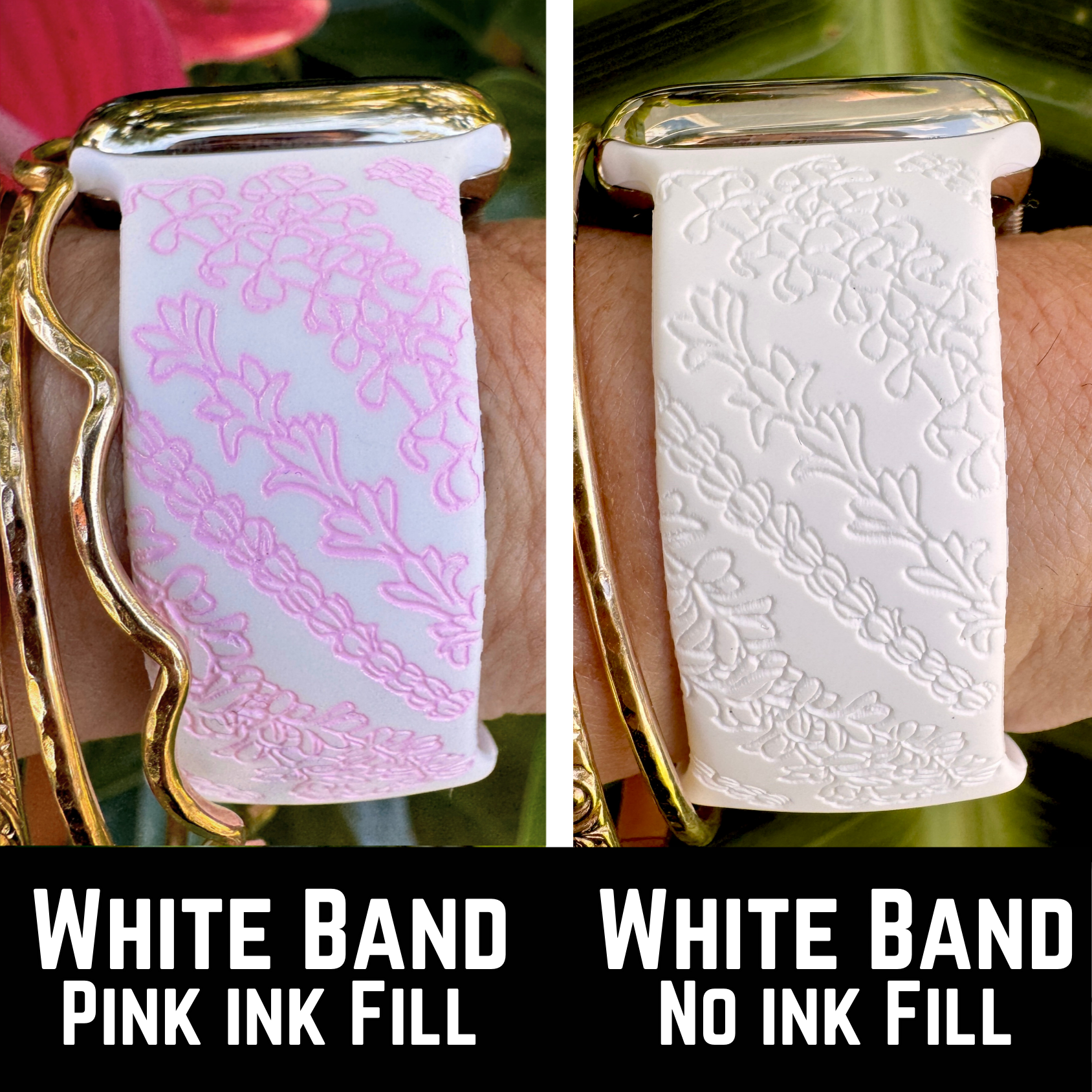 Filled: Your watchband engraving will be filled with permanent silicone ink of your choice. There is a $15 fee for adding ink to your band. This process is done by hand and will add extra processing time to your order to complete. If you have questions about processing time, please contact us! All orders are made to order. All sales final on Watch Bands with Ink fill. They are not eligible for exchange or return.