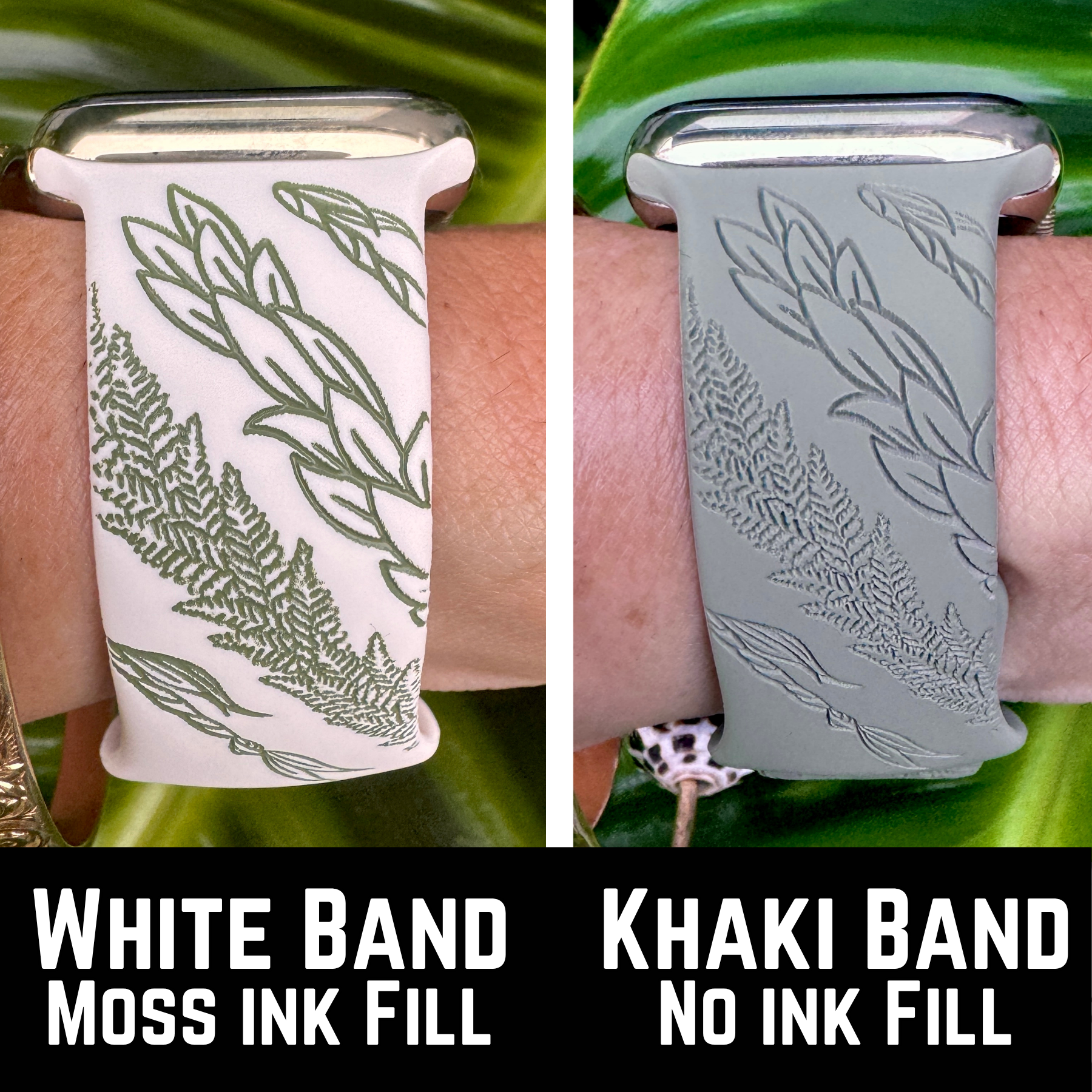 Filled: Your watchband engraving will be filled with permanent silicone ink of your choice. There is a $15 fee for adding ink to your band. This process is done by hand and will add extra processing time to your order to complete. If you have questions about processing time, please contact us! All orders are made to order. All sales final on Watch Bands with Ink fill. They are not eligible for exchange or return.