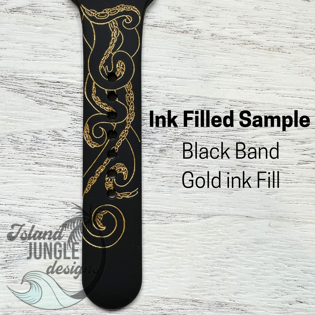 Filled: Your watchband engraving will be filled with permanent silicone ink of your choice. There is a $15 fee for adding ink to your band. This process is done by hand and will add extra processing time to your order to complete. If you have questions about processing time, please contact us! All orders are made to order. All sales final on Watch Bands with Ink fill. They are not eligible for exchange or return.